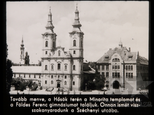 fekete-fehér diafilm ismeretterjesztő belváros minorita templom iskola gimnázium utcakép Miskolc 1963Fotó részletei
