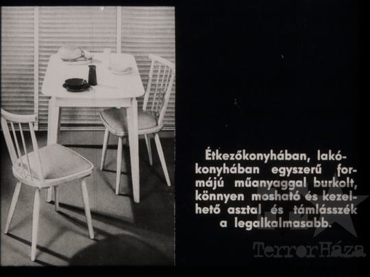 fekete-fehér diafilm ismeretterjesztő lakberendezés design bútor konyha étkező berendezés 1963Fotó részletei