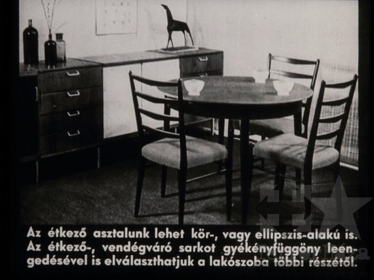 fekete-fehér diafilm ismeretterjesztő lakberendezés design étkező bútor berendezés 1963Fotó részletei