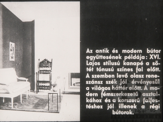 fekete-fehér diafilm ismeretterjesztő lakberendezés design bútor lakás otthon berendezés 1963Fotó részletei