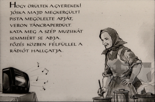 LEÍRÁS: A Beszélő képek sorozat ezen animációs darabja falusi környezetben egy családi történeten keresztül népszerűsíti a néprádiót (Orion 115A). Rajzolta: Szőnyi Gyula.