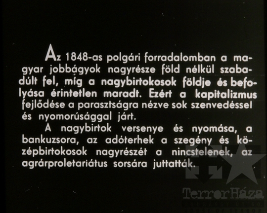 fekete-fehér diafilm propaganda földmunkás parasztmozgalom jobbágy 1848 nagybirtok adó agrárproletár 1963