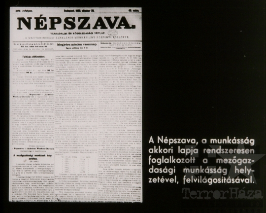 fekete-fehér diafilm propaganda földmunkás parasztmozgalom Népszava újság munkás 1963