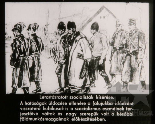 fekete-fehér diafilm propaganda földmunkás parasztmozgalom kubikos szocializmus letartoztatás 1963Fotó részletei