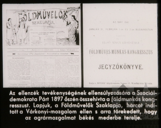 LEÍRÁS: A diafilm részletes áttekintést ad a XIX. század végi paraszt- és agrárproletár-mozgalmakról; az 1890-es évek politikai, társadalmi, érdekvédelmi harcairól, demonstrációiról, kiemelve az 1891 és 1894-es viharsarki megmozdulásokat, valamint kitekint az 1905-ös dél-dunántúli aratósztrájkra is. Összeállította: S. Vince Edit, szerkesztette: Ruzicska Józsefné.