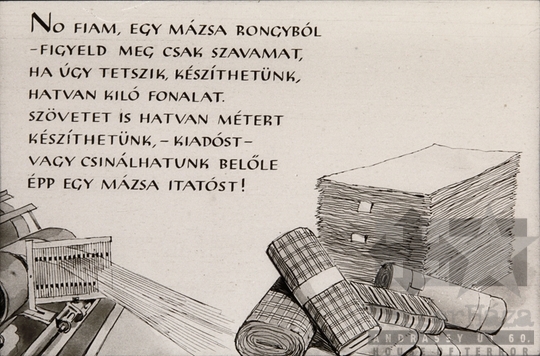 fekete-fehér diafilm politikai mese propaganda hulladék újrahasznosítás rongy fonal szövet 1950