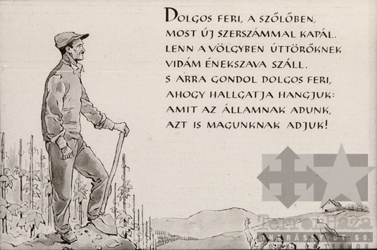 fekete-fehér diafilm politikai mese propaganda hulladék újrahasznosítás szőlő kapa úttörő 1950