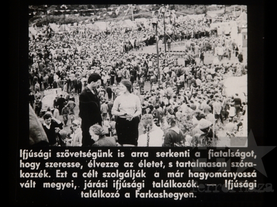 fekete-fehér diafilm propaganda ifjúsági mozgalmi élet KISZ erkölcs kommunizmus szocializmus ifjúság kommunista erkölcs ifjúsági találkozó Farkashegy 1962Fotó részletei