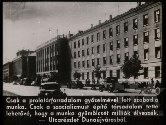 fekete-fehér diafilm propaganda ifjúsági mozgalmi élet KISZ munka proletárforradalom utcakép Dunaújváros szocializmus 1962Fotó részletei