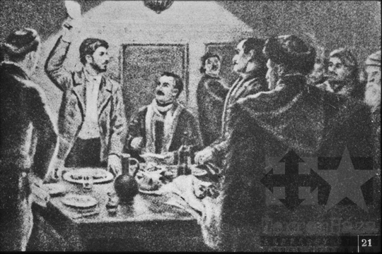 fekete-fehér diafilm propaganda Lenin Sztálin bolsevizmus szovjet munkásmozgalom kommunizmus 1951Fotó részletei
