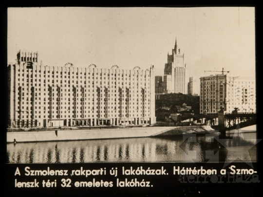 fekete-fehér diafilm ismeretterjesztő főváros belváros utcakép épület rakpart Moszkva 1955Fotó részletei