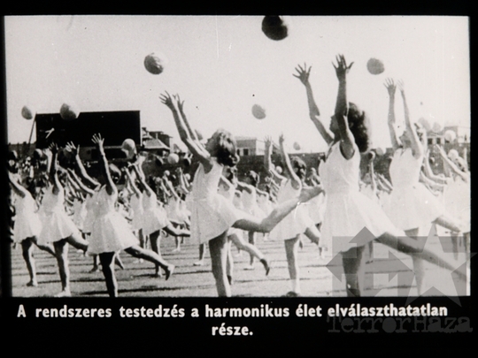 fekete-fehér diafilm propaganda ifjúsági mozgalmi élet KISZ élet boldogság testedzés 1962Fotó részletei