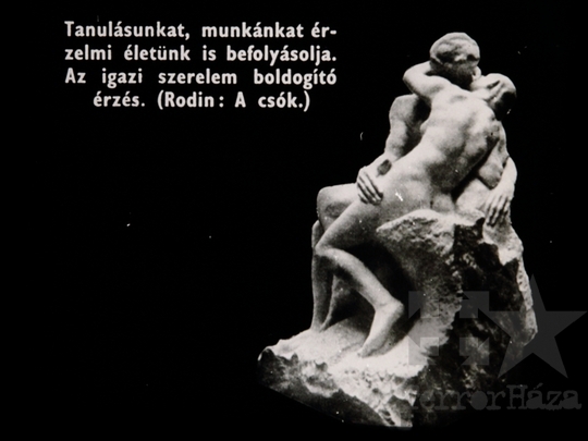 fekete-fehér diafilm propaganda ifjúsági mozgalmi élet KISZ élet boldogság szerelem tanulás munka szobor 1962Fotó részletei