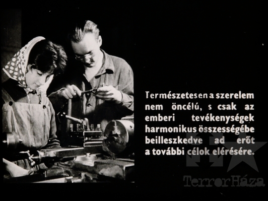 fekete-fehér diafilm propaganda ifjúsági mozgalmi élet KISZ élet boldogság szerelem cél 1962Fotó részletei