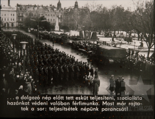 fekete-fehér diafilm propaganda hidegháború katona néphadsereg haza eskütétel 1965Fotó részletei