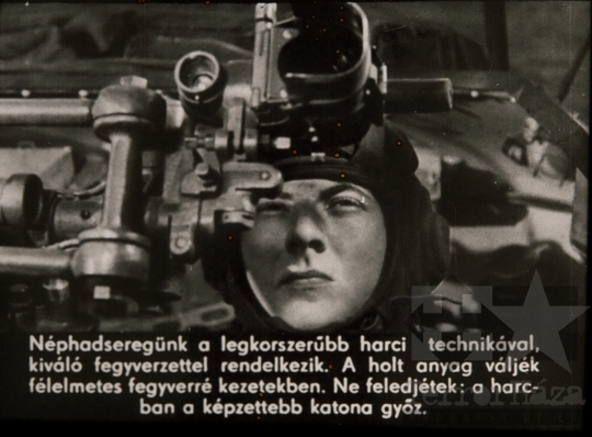 fekete-fehér diafilm propaganda hidegháború katona néphadsereg haza harckocsi tankos 1965Fotó részletei