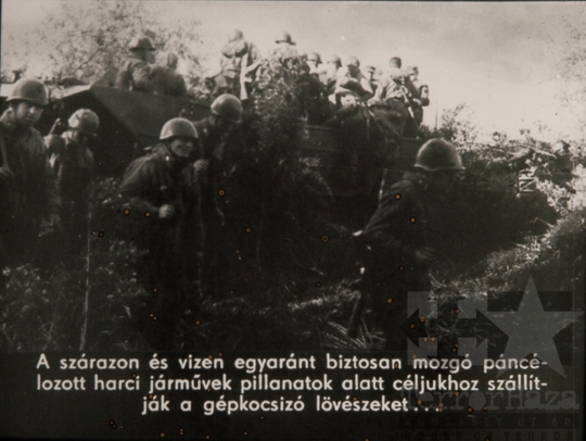 fekete-fehér diafilm propaganda hidegháború katona néphadsereg haza harckocsi egyenruha sisak 1965Fotó részletei