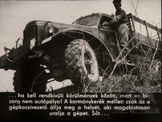 fekete-fehér diafilm propaganda hidegháború katona néphadsereg haza Csepel teherautó egyenruha 1965Fotó részletei