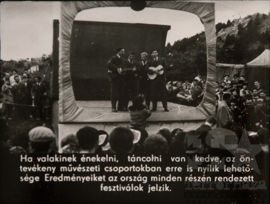 fekete-fehér diafilm propaganda hidegháború katona néphadsereg haza fesztivál gitár 1965Fotó részletei