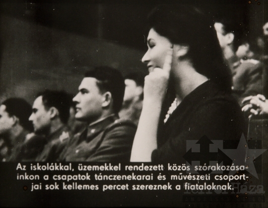 fekete-fehér diafilm propaganda hidegháború katona néphadsereg haza egyenruha közönség 1965Fotó részletei