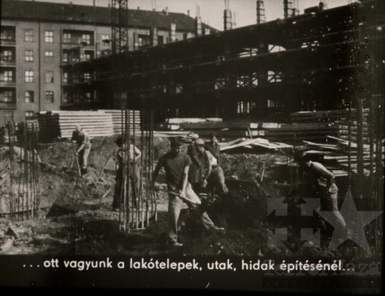 fekete-fehér diafilm propaganda hidegháború katona néphadsereg haza építkezés 1965Fotó részletei
