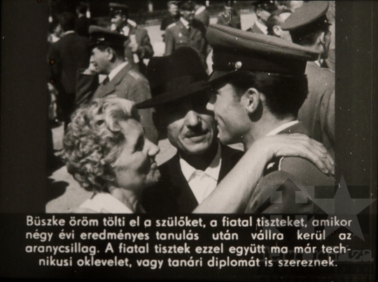 fekete-fehér diafilm propaganda hidegháború katona néphadsereg haza egyenruha tiszt család 1965Fotó részletei