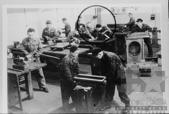 AZONOSÍTÓ: THM-BJ-00717 Férfi beszédet mond - transzparensen felirat: "Munkánk minőségének és hatékonyságának javításával, többletvállalásokkal készülünk a NAGY OKT. SZOC. FORR. 60. évfordulójára". [Az októberi orosz forradalom (kommunista propagandában: nagy októberi szocialista forradalom) 1917. november 6–12. (október 24–30.) között zajlott, amelynek során a bolsevikok a Téli Palota ostroma után az ott székelő Ideiglenes Kormány tagjait letartóztatták, és Lenin vezetésével, akit a Népbiztosok Tanácsa elnökévé választottak, puccsal átvették a hatalmat. Hazánkban ez a nap 1950-től 1989-ig pártállami ünnep volt.] [A szocialista brigádmozgalom szovjet mintára az 1950-es évek végén kezdett kibontakozni Magyarországon, és rendszerváltoztatáskor szűnt meg. Kezdetben csak az ipari üzemekben és gyárakban alakultak meg a brigádok, majd az agráriumban és a hivatali szférában is létrejöttek. A mozgalom jelszava: „Szocialista módon dolgozni, tanulni és élni” volt.] HELYSZÍN: Szekszárd, Tolna megye DÁTUM: 1977 FOTÓS: Bakó Jenő