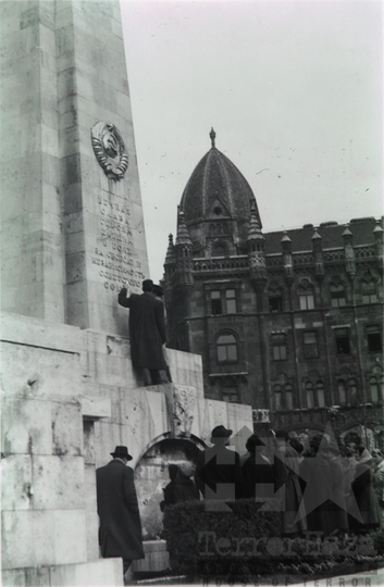 szovjet cirill címer emlékmű talapzat dombormű jelképrombolás Szabadság tér Budapest Faragó GyörgyFotó részletei