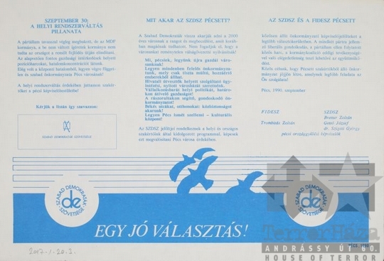 THM-PLA-2017.1.20.3b - SZDSZ választási szórólap - 1990