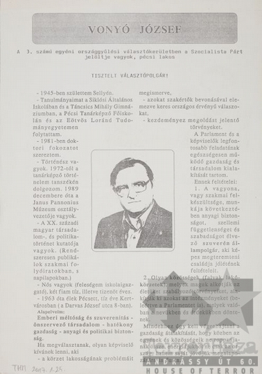 MSZP Magyar Szocialista Párt országgyűlési választás szavazás szórólap jelölt Vonyó József Pécs 1990Fotó részletei