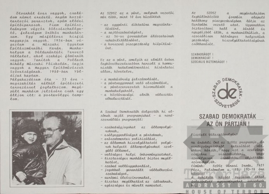 SZDSZ Szabad Demokraták Szövetsége választás országgyűlési választás szavazás szórólap Getto József jelölt Pécs 1990Fotó részletei