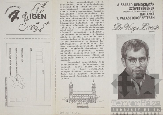 SZDSZ Szabad Demokraták Szövetsége választás országgyűlési választás szavazás szórólap dr. Varga Levente jelölt Pécs 1990Fotó részletei