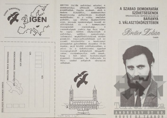 SZDSZ Szabad Demokraták Szövetsége választás országgyűlési választás szavazás Bretter Zoltán jelölt szórólap Pécs 1990Fotó részletei