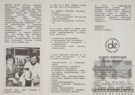 SZDSZ Szabad Demokraták Szövetsége választás országgyűlési választás szavazás Bretter Zoltán jelölt szórólap Pécs 1990Fotó részletei
