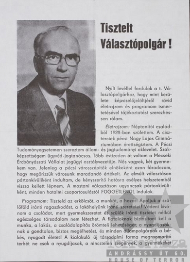 független jelölt választás országgyűlési választás szavazás szórólap jelölt Pécs 1990Fotó részletei