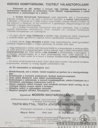 SZDSZ Szabad Demokraták Szövetsége választás országgyűlési választás szavazás szórólap 1990Fotó részletei