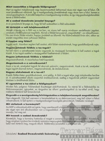 SZDSZ Szabad Demokraták Szövetsége szórólap termőföld pártprogram 1990Fotó részletei
