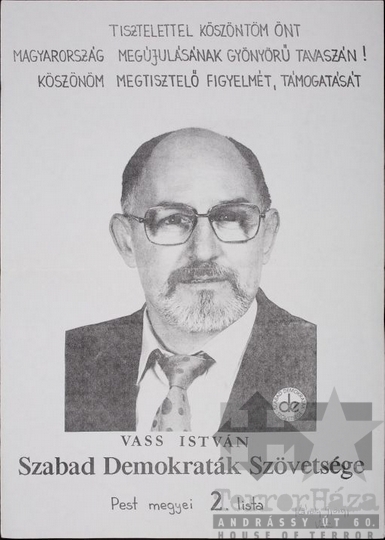 SZDSZ Szabad Demokraták Szövetsége választás országgyűlési választás szavazás plakát Vass István jelölt Vác 1990Fotó részletei