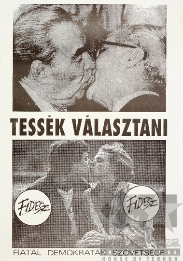 Fidesz Fiatal Demokraták Szövetsége választás országgyűlési választás szavazás Erich Honecker Leonyid Brezsnyev csók plakát 1990Fotó részletei