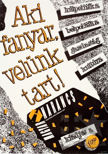Magyar Narancs folyóirat plakátja. "Aki fanyar velünk tart!"
