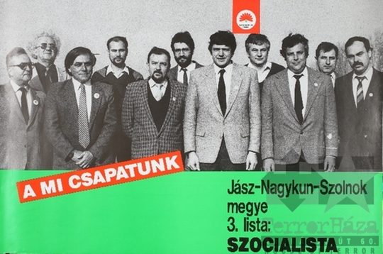 MSZP Magyar Szocialista Párt országgyűlési választás szavazás plakát jelölt Jász-Nagykun-Szolnok megye 1990Fotó részletei
