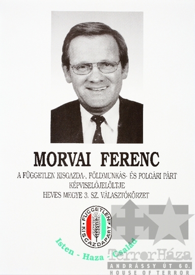 FKgP Független Kisgazda- Földmunkás- és Polgári Párt választás országgyűlési választás szavazás plakát jelölt Morvai Ferenc Heves megye 1990Fotó részletei