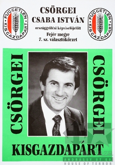 FKgP Független Kisgazda- Földmunkás- és Polgári Párt választás országgyűlési választás szavazás plakát jelölt Csörgei Csaba István Fejér megye 1990Fotó részletei