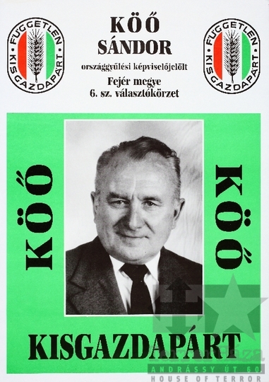 FKgP Független Kisgazda- Földmunkás- és Polgári Párt választás országgyűlési választás szavazás plakát jelölt Köő Sándor Fejér megye 1990Fotó részletei