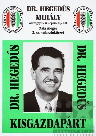 FKgP Független Kisgazda- Földmunkás- és Polgári Párt választás országgyűlési választás szavazás plakát jelölt Dr. Hegedűs Mihály Zala megye 1990Fotó részletei