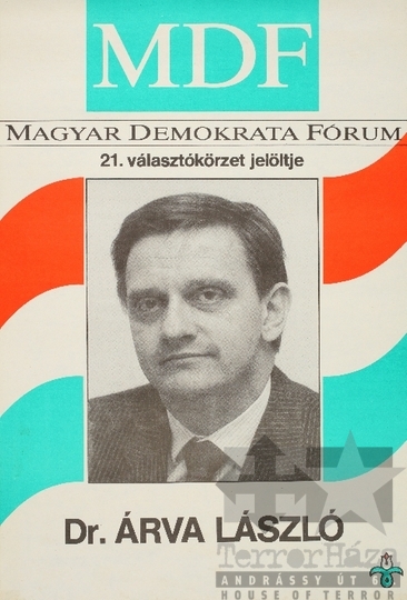 MDF Magyar Demokrata Fórum választás országgyűlési választás szavazás dr. Árva László jelölt plakát 1990Fotó részletei