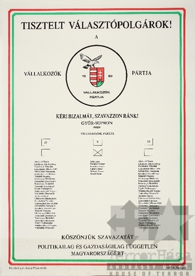 Vállalkozók Pártja választás országgyűlési választás szavazás plakát jelölt 1990Fotó részletei