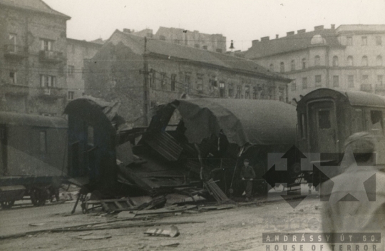 utcakép vasúti kocsi roncs Széna tér Budapest Purgát PiroskaFotó részletei