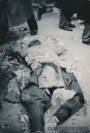 holttest lincselés katona karhatalom ÁVH egyenruha pártház ostrom Köztársaság tér Budapest Radics FerencFotó részletei