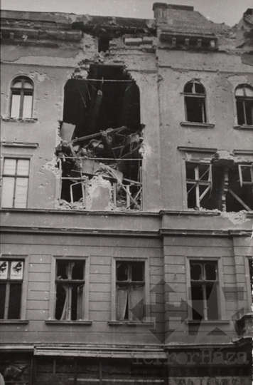 Belövést kapott épület a Rákóczi út 34. szám alatt.